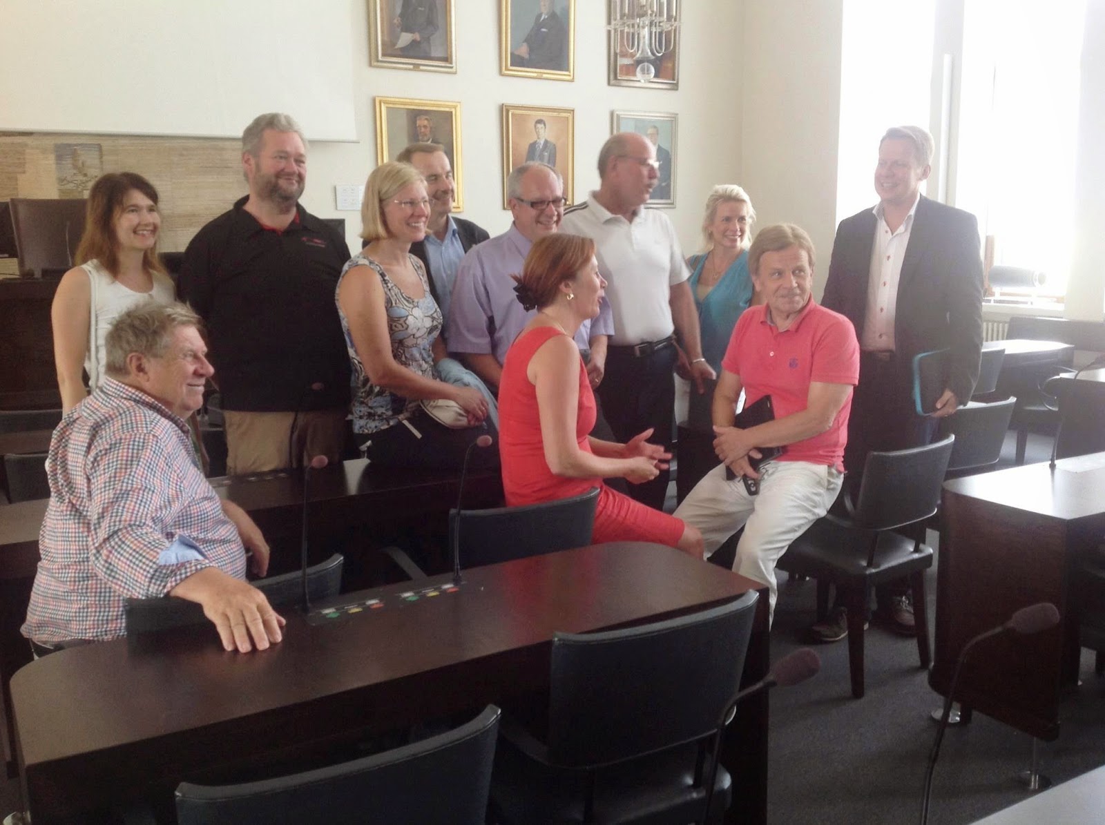 Talousvaliokunta teki kesäkokousmatkan Kotkaan. Saimme hyvän katsauksen Itä-Suomen taloustilanteesta, teollisuudesta, työpaikoista, Venäjän kaupasta ja Ukrainan kriisin pakotteiden vaikutuksesta siihen. Kuvassa valiokunta on koolla Kotkan kaupunginvaltuuston kokoussalissa.